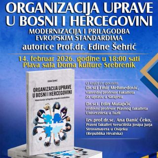 U subotu, 14.02.2026. godine sa početkom u 18:00 sati u Centru za kulturu i informisanje Grada Srebrenika održati će se promocija knjige „Organizacija uprave u Bosni i Hercegovini – modernizacija i prilagodba evropskim standardima“...