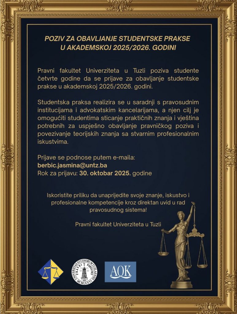 Poziv za obavljanje studentske prakse u akademskoj 2025/2026. godini by Nejra Omerović · 09. 10. 2025.